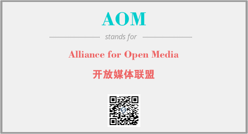 上述内容是“Alliance for Open Media”作为“AOM”的缩写,解释为“开放媒体联盟”时的信息,以及英文缩略词AOM所代表的英文单词,其对应的中文拼音、详细解释以及在英文中的流行度和相关分类、应用领域及应用示例等。