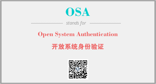 英文缩略词“OSA”经常作为“Open System Authentication”的英文缩写来使用,中文表示:“开放系统身份验证”。本文将详细介绍英文缩写词OSA所代表英文单词,其对应的中文拼音、详细解释以及在英语中的流行度。此外,还有关于缩略词OSA的分类、应用领域及相关应用示例等。