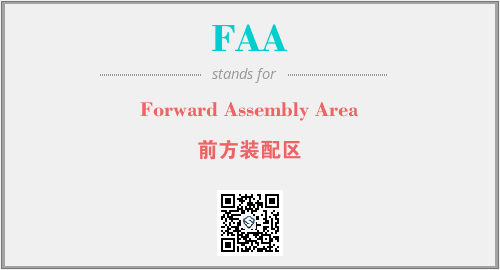英文缩略词“FAA”经常作为“Forward Assembly Area”的英文缩写来使用,中文表示:“前方装配区”。本文将详细介绍英文缩写词FAA所代表英文单词,其对应的中文拼音、详细解释以及在英语中的流行度。此外,还有关于缩略词FAA的分类、应用领域及相关应用示例等。
