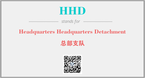 上述内容是“Headquarters Headquarters Detachment”作为“HHD”的缩写,解释为“总部支队”时的信息,以及英文缩略词HHD所代表的英文单词,其对应的中文拼音、详细解释以及在英文中的流行度和相关分类、应用领域及应用示例等。