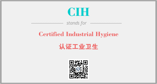 英文缩略词“CIH”经常作为“Certified Industrial Hygiene”的英文缩写来使用,中文表示:“认证工业卫生”。本文将详细介绍英文缩写词CIH所代表英文单词,其对应的中文拼音、详细解释以及在英语中的流行度。此外,还有关于缩略词CIH的分类、应用领域及相关应用示例等。