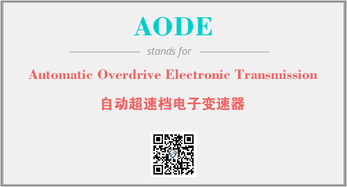 上述内容是“Automatic Overdrive Electronic Transmission”作为“AODE”的缩写,解释为“自动超速档电子变速器”时的信息,以及英文缩略词AODE所代表的英文单词,其对应的中文拼音、详细解释以及在英文中的流行度和相关分类、应用领域及应用示例等。
