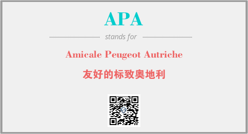 以上为Amicale Peugeot Autriche英文缩略词APA的中文解释,以及该英文缩写在英语的流行度、分类和应用领域方面的信息。