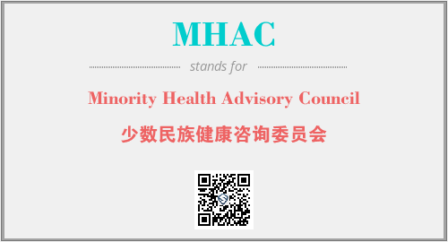 上述内容是“Minority Health Advisory Council”作为“MHAC”的缩写,解释为“少数民族健康咨询委员会”时的信息,以及英文缩略词MHAC所代表的英文单词,其对应的中文拼音、详细解释以及在英文中的流行度和相关分类、应用领域及应用示例等。
