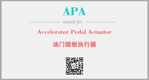 以上为Accelerator Pedal Actuator英文缩略词APA的中文解释,以及该英文缩写在英语的流行度、分类和应用领域方面的信息。