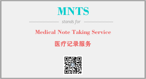上述内容是“Medical Note Taking Service”作为“MNTS”的缩写,解释为“医疗记录服务”时的信息,以及英文缩略词MNTS所代表的英文单词,其对应的中文拼音、详细解释以及在英文中的流行度和相关分类、应用领域及应用示例等。