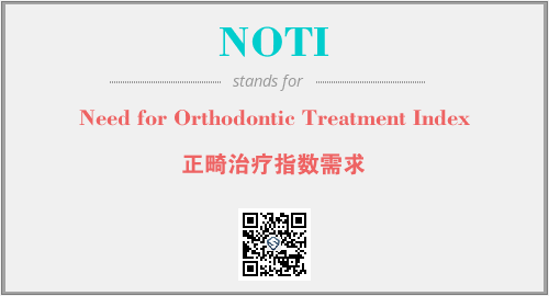 上述内容是“Need for Orthodontic Treatment Index”作为“NOTI”的缩写,解释为“正畸治疗指数需求”时的信息,以及英文缩略词NOTI所代表的英文单词,其对应的中文拼音、详细解释以及在英文中的流行度和相关分类、应用领域及应用示例等。