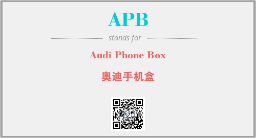 以上为Audi Phone Box英文缩略词APB的中文解释,以及该英文缩写在英语的流行度、分类和应用领域方面的信息。