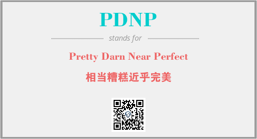 英文缩略词“PDNP”经常作为“Pretty Darn Near Perfect”的英文缩写来使用,中文表示:“相当糟糕近乎完美”。本文将详细介绍英文缩写词PDNP所代表英文单词,其对应的中文拼音、详细解释以及在英语中的流行度。此外,还有关于缩略词PDNP的分类、应用领域及相关应用示例等。
