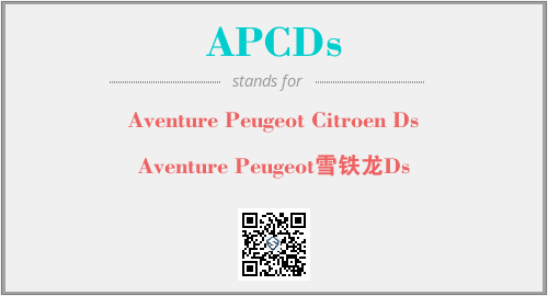 英文缩略词“APCDs”经常作为“Aventure Peugeot Citroen Ds”的英文缩写来使用,中文表示:“Aventure Peugeot雪铁龙Ds”。本文将详细介绍英文缩写词APCDs所代表英文单词,其对应的中文拼音、详细解释以及在英语中的流行度。此外,还有关于缩略词APCDs的分类、应用领域及相关应用示例等。