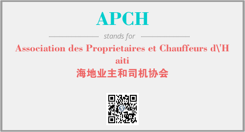 以上为Association des Proprietaires et Chauffeurs d\'Haiti英文缩略词APCH的中文解释,以及该英文缩写在英语的流行度、分类和应用领域方面的信息。