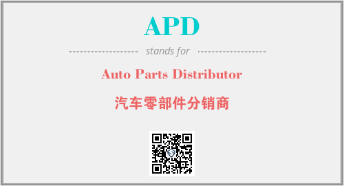 上述内容是“Auto Parts Distributor”作为“APD”的缩写,解释为“汽车零部件分销商”时的信息,以及英文缩略词APD所代表的英文单词,其对应的中文拼音、详细解释以及在英文中的流行度和相关分类、应用领域及应用示例等。