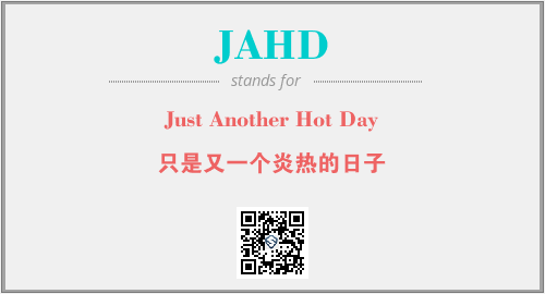 上述内容是“Just Another Hot Day”作为“JAHD”的缩写,解释为“只是又一个炎热的日子”时的信息,以及英文缩略词JAHD所代表的英文单词,其对应的中文拼音、详细解释以及在英文中的流行度和相关分类、应用领域及应用示例等。