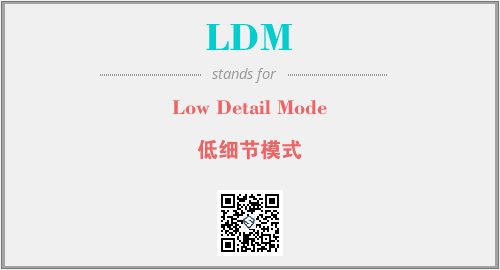上述内容是“Low Detail Mode”作为“LDM”的缩写,解释为“低细节模式”时的信息,以及英文缩略词LDM所代表的英文单词,其对应的中文拼音、详细解释以及在英文中的流行度和相关分类、应用领域及应用示例等。