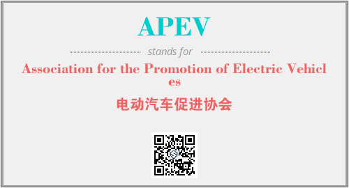 上述内容是“Association for the Promotion of Electric Vehicles”作为“APEV”的缩写,解释为“电动汽车促进协会”时的信息,以及英文缩略词APEV所代表的英文单词,其对应的中文拼音、详细解释以及在英文中的流行度和相关分类、应用领域及应用示例等。