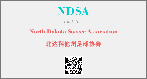 上述内容是“North Dakota Soccer Association”作为“NDSA”的缩写,解释为“北达科他州足球协会”时的信息,以及英文缩略词NDSA所代表的英文单词,其对应的中文拼音、详细解释以及在英文中的流行度和相关分类、应用领域及应用示例等。