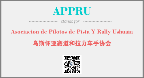 上述内容是“Asociacion de Pilotos de Pista Y Rally Ushuaia”作为“APPRU”的缩写,解释为“乌斯怀亚赛道和拉力车手协会”时的信息,以及英文缩略词APPRU所代表的英文单词,其对应的中文拼音、详细解释以及在英文中的流行度和相关分类、应用领域及应用示例等。