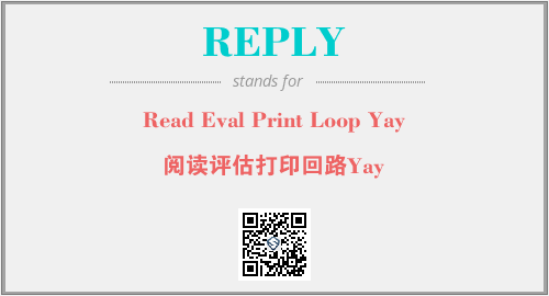 上述内容是“Read Eval Print Loop Yay”作为“REPLY”的缩写,解释为“阅读评估打印回路Yay”时的信息,以及英文缩略词REPLY所代表的英文单词,其对应的中文拼音、详细解释以及在英文中的流行度和相关分类、应用领域及应用示例等。