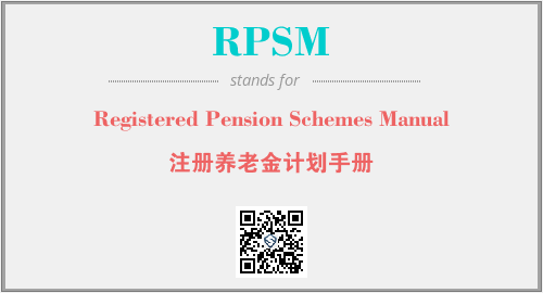 英文缩略词“RPSM”经常作为“Registered Pension Schemes Manual”的英文缩写来使用,中文表示:“注册养老金计划手册”。本文将详细介绍英文缩写词RPSM所代表英文单词,其对应的中文拼音、详细解释以及在英语中的流行度。此外,还有关于缩略词RPSM的分类、应用领域及相关应用示例等。