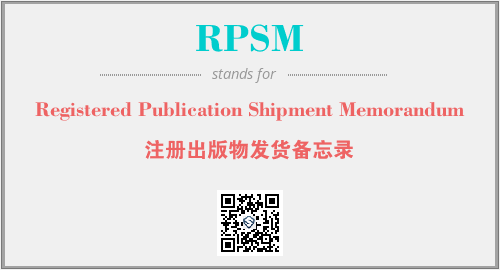 英文缩略词“RPSM”经常作为“Registered Publication Shipment Memorandum”的英文缩写来使用,中文表示:“注册出版物发货备忘录”。本文将详细介绍英文缩写词RPSM所代表英文单词,其对应的中文拼音、详细解释以及在英语中的流行度。此外,还有关于缩略词RPSM的分类、应用领域及相关应用示例等。