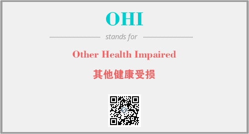 上述内容是“Other Health Impaired”作为“OHI”的缩写,解释为“其他健康受损”时的信息,以及英文缩略词OHI所代表的英文单词,其对应的中文拼音、详细解释以及在英文中的流行度和相关分类、应用领域及应用示例等。