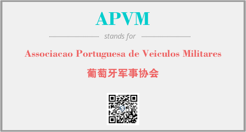 英文缩略词“APVM”经常作为“Associacao Portuguesa de Veiculos Militares”的英文缩写来使用,中文表示:“葡萄牙军事协会”。本文将详细介绍英文缩写词APVM所代表英文单词,其对应的中文拼音、详细解释以及在英语中的流行度。此外,还有关于缩略词APVM的分类、应用领域及相关应用示例等。