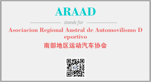 上述内容是“Asociacion Regional Austral de Automovilismo Deportivo”作为“ARAAD”的缩写,解释为“南部地区运动汽车协会”时的信息,以及英文缩略词ARAAD所代表的英文单词,其对应的中文拼音、详细解释以及在英文中的流行度和相关分类、应用领域及应用示例等。