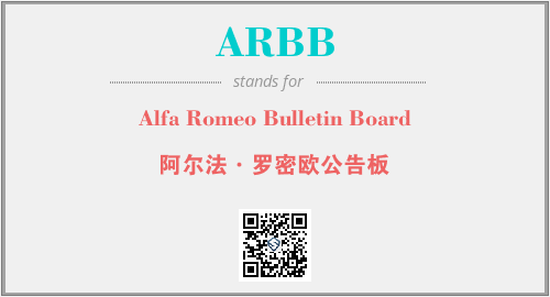 上述内容是“Alfa Romeo Bulletin Board”作为“ARBB”的缩写,解释为“阿尔法·罗密欧公告板”时的信息,以及英文缩略词ARBB所代表的英文单词,其对应的中文拼音、详细解释以及在英文中的流行度和相关分类、应用领域及应用示例等。