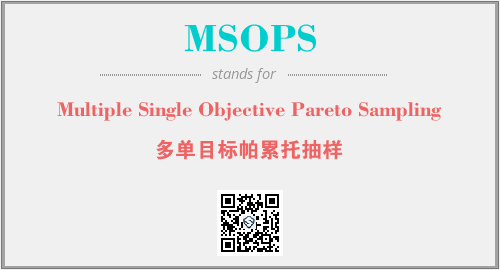上述内容是“Multiple Single Objective Pareto Sampling”作为“MSOPS”的缩写,解释为“多单目标帕累托抽样”时的信息,以及英文缩略词MSOPS所代表的英文单词,其对应的中文拼音、详细解释以及在英文中的流行度和相关分类、应用领域及应用示例等。