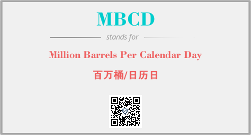 上述内容是“Million Barrels Per Calendar Day”作为“MBCD”的缩写,解释为“百万桶/日历日”时的信息,以及英文缩略词MBCD所代表的英文单词,其对应的中文拼音、详细解释以及在英文中的流行度和相关分类、应用领域及应用示例等。