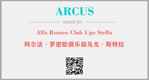 以上为Alfa Romeo Club Ugo Stella英文缩略词ARCUS的中文解释,以及该英文缩写在英语的流行度、分类和应用领域方面的信息。