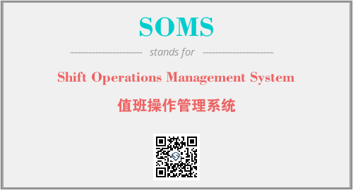 上述内容是“Shift Operations Management System”作为“SOMS”的缩写,解释为“值班操作管理系统”时的信息,以及英文缩略词SOMS所代表的英文单词,其对应的中文拼音、详细解释以及在英文中的流行度和相关分类、应用领域及应用示例等。