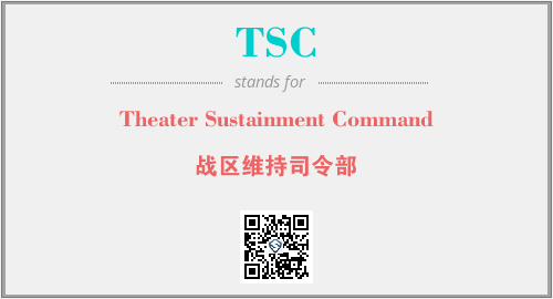 英文缩略词“TSC”经常作为“Theater Sustainment Command”的英文缩写来使用,中文表示:“战区维持司令部”。本文将详细介绍英文缩写词TSC所代表英文单词,其对应的中文拼音、详细解释以及在英语中的流行度。此外,还有关于缩略词TSC的分类、应用领域及相关应用示例等。