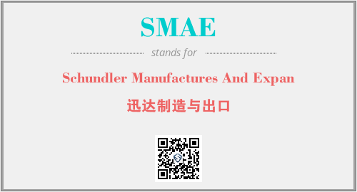 上述内容是“Schundler Manufactures And Expan”作为“SMAE”的缩写,解释为“迅达制造与出口”时的信息,以及英文缩略词SMAE所代表的英文单词,其对应的中文拼音、详细解释以及在英文中的流行度和相关分类、应用领域及应用示例等。