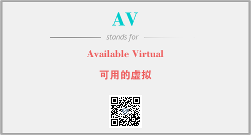英文缩略词“AV”经常作为“Available Virtual”的英文缩写来使用,中文表示:“可用的虚拟”。本文将详细介绍英文缩写词AV所代表英文单词,其对应的中文拼音、详细解释以及在英语中的流行度。此外,还有关于缩略词AV的分类、应用领域及相关应用示例等。