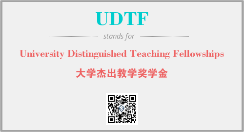 上述内容是“University Distinguished Teaching Fellowships”作为“UDTF”的缩写,解释为“大学杰出教学奖学金”时的信息,以及英文缩略词UDTF所代表的英文单词,其对应的中文拼音、详细解释以及在英文中的流行度和相关分类、应用领域及应用示例等。