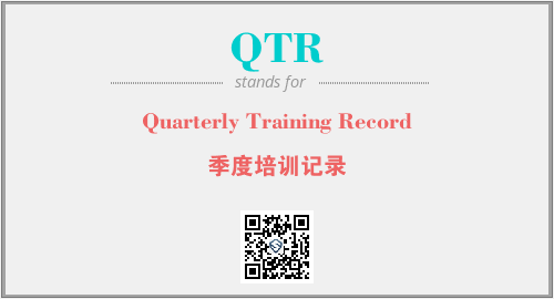 上述内容是“Quarterly Training Record”作为“QTR”的缩写,解释为“季度培训记录”时的信息,以及英文缩略词QTR所代表的英文单词,其对应的中文拼音、详细解释以及在英文中的流行度和相关分类、应用领域及应用示例等。