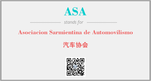 以上为Asociacion Sarmientina de Automovilismo英文缩略词ASA的中文解释,以及该英文缩写在英语的流行度、分类和应用领域方面的信息。