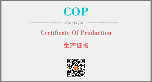 上述内容是“Certificate Of Production”作为“COP”的缩写,解释为“生产证书”时的信息,以及英文缩略词COP所代表的英文单词,其对应的中文拼音、详细解释以及在英文中的流行度和相关分类、应用领域及应用示例等。