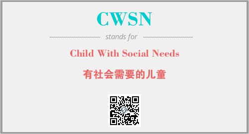 上述内容是“Child With Social Needs”作为“CWSN”的缩写,解释为“有社会需要的儿童”时的信息,以及英文缩略词CWSN所代表的英文单词,其对应的中文拼音、详细解释以及在英文中的流行度和相关分类、应用领域及应用示例等。