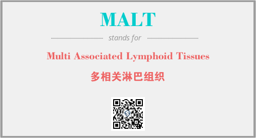 英文缩略词“MALT”经常作为“Multi Associated Lymphoid Tissues”的英文缩写来使用,中文表示:“多相关淋巴组织”。本文将详细介绍英文缩写词MALT所代表英文单词,其对应的中文拼音、详细解释以及在英语中的流行度。此外,还有关于缩略词MALT的分类、应用领域及相关应用示例等。