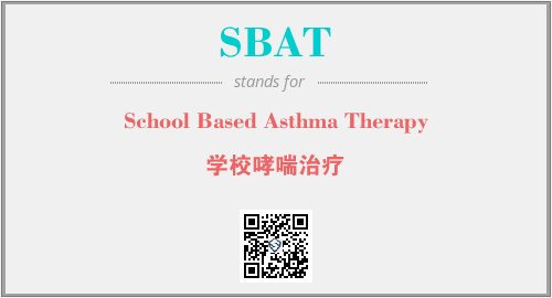 上述内容是“School Based Asthma Therapy”作为“SBAT”的缩写,解释为“学校哮喘治疗”时的信息,以及英文缩略词SBAT所代表的英文单词,其对应的中文拼音、详细解释以及在英文中的流行度和相关分类、应用领域及应用示例等。