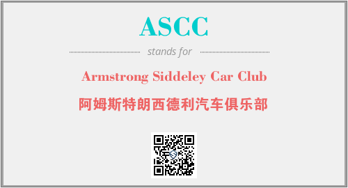 上述内容是“Armstrong Siddeley Car Club”作为“ASCC”的缩写,解释为“阿姆斯特朗西德利汽车俱乐部”时的信息,以及英文缩略词ASCC所代表的英文单词,其对应的中文拼音、详细解释以及在英文中的流行度和相关分类、应用领域及应用示例等。