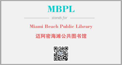 以上为Miami Beach Public Library英文缩略词MBPL的中文解释,以及该英文缩写在英语的流行度、分类和应用领域方面的信息。