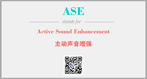 上述内容是“Active Sound Enhancement”作为“ASE”的缩写,解释为“主动声音增强”时的信息,以及英文缩略词ASE所代表的英文单词,其对应的中文拼音、详细解释以及在英文中的流行度和相关分类、应用领域及应用示例等。