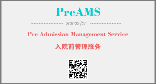 英文缩略词“PreAMS”经常作为“Pre Admission Management Service”的英文缩写来使用,中文表示:“入院前管理服务”。本文将详细介绍英文缩写词PreAMS所代表英文单词,其对应的中文拼音、详细解释以及在英语中的流行度。此外,还有关于缩略词PreAMS的分类、应用领域及相关应用示例等。