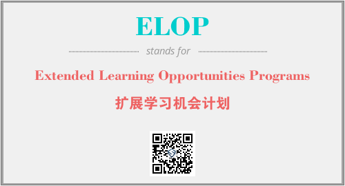 以上为Extended Learning Opportunities Programs英文缩略词ELOP的中文解释,以及该英文缩写在英语的流行度、分类和应用领域方面的信息。