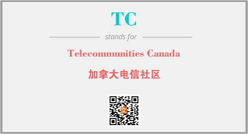上述内容是“Telecommunities Canada”作为“TC”的缩写,解释为“加拿大电信社区”时的信息,以及英文缩略词TC所代表的英文单词,其对应的中文拼音、详细解释以及在英文中的流行度和相关分类、应用领域及应用示例等。