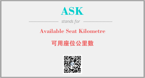 英文缩略词“ASK”经常作为“Available Seat Kilometre”的英文缩写来使用,中文表示:“可用座位公里数”。本文将详细介绍英文缩写词ASK所代表英文单词,其对应的中文拼音、详细解释以及在英语中的流行度。此外,还有关于缩略词ASK的分类、应用领域及相关应用示例等。