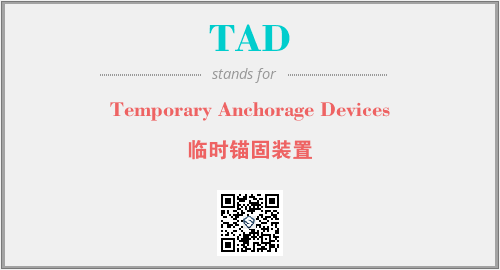 上述内容是“Temporary Anchorage Devices”作为“TAD”的缩写,解释为“临时锚固装置”时的信息,以及英文缩略词TAD所代表的英文单词,其对应的中文拼音、详细解释以及在英文中的流行度和相关分类、应用领域及应用示例等。